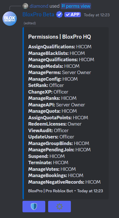 BloxPro makes configuring your server’s permissions easy. You can add roles to 3 seperate categories: Owner, HICOM and Officer. You can also then configure what each category can do and what they have access to.
